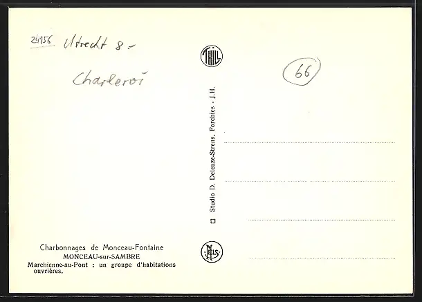 AK Monceau-sur-Sambre, Charbonnages de Monceau-Fontaine, Marchienne-au-Pont, un groupe d`habitations ouvrières