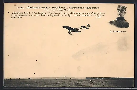 AK Monoplan Blériot, piloté par le Lieutenant Acquaviva, Flugzeug