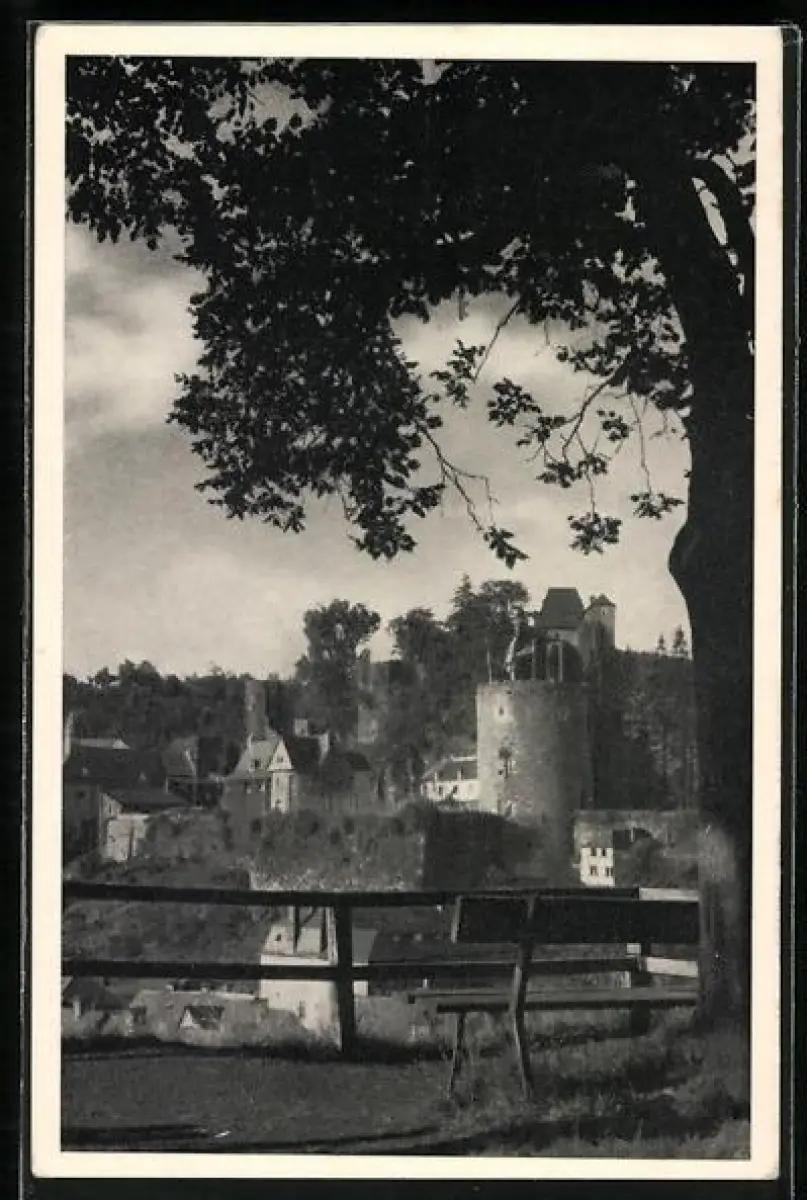 AK Monschau, Partie mit Burg