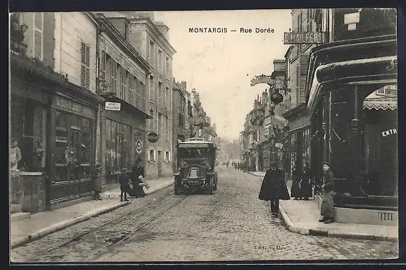 AK Montargis, Rue Dorée, Strassenpartie mit Geschäften