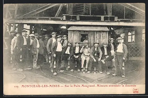 AK Montceau-les-Mines, Sur le Puits Maugrand, Mineurs attendant la descente, Kohlebergbau