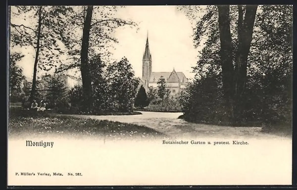 AK Montigny, Botanischer Garten u. protest. Kirche