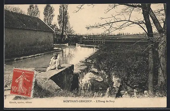 AK Montigny-Lencoup, L`Étang de Scoy avec une femme assise près de l`eau