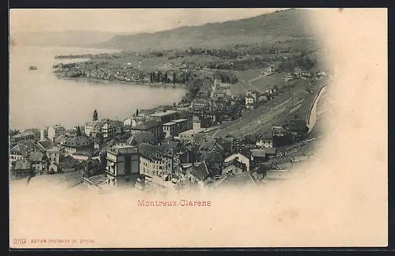 AK Montreux-Clarens, Ortsansicht mit Seeufer aus der Vogelschau
