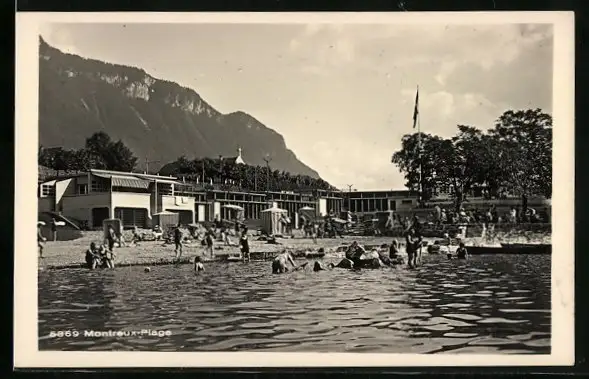 AK Montreux, Plage, Partie im Strandbad