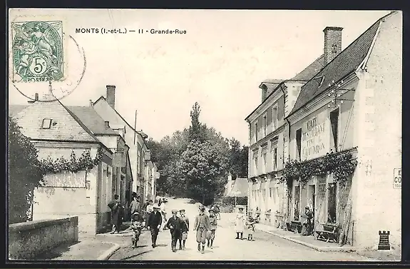 AK Monts, Scène animée dans la Grande-Rue avec enfants et passants