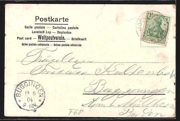 alte Ansichtskarte, gelaufen 1904, Kanten bestoßen, guter Zustand