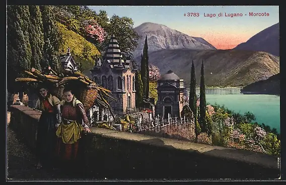 AK Morcote /Lago di Lugano, Ortspartie mit Kirche