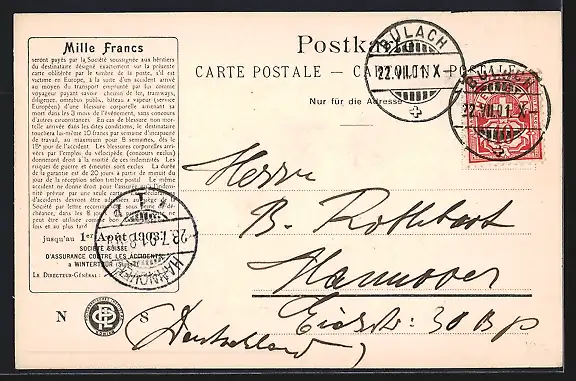alte Ansichtskarte, gelaufen 1901, Stempelspur, guter Zustand