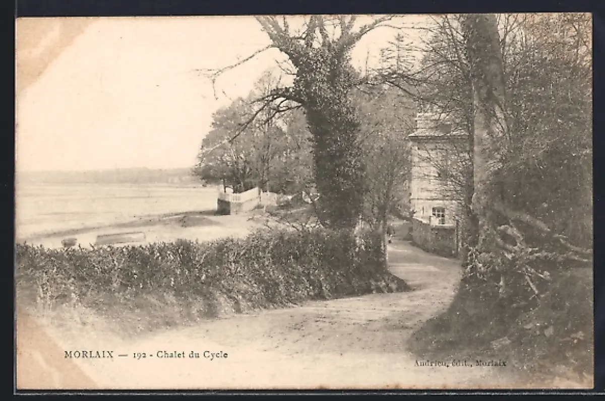 AK Morlaix, Chalet du Cycle et chemin bordé d`arbres