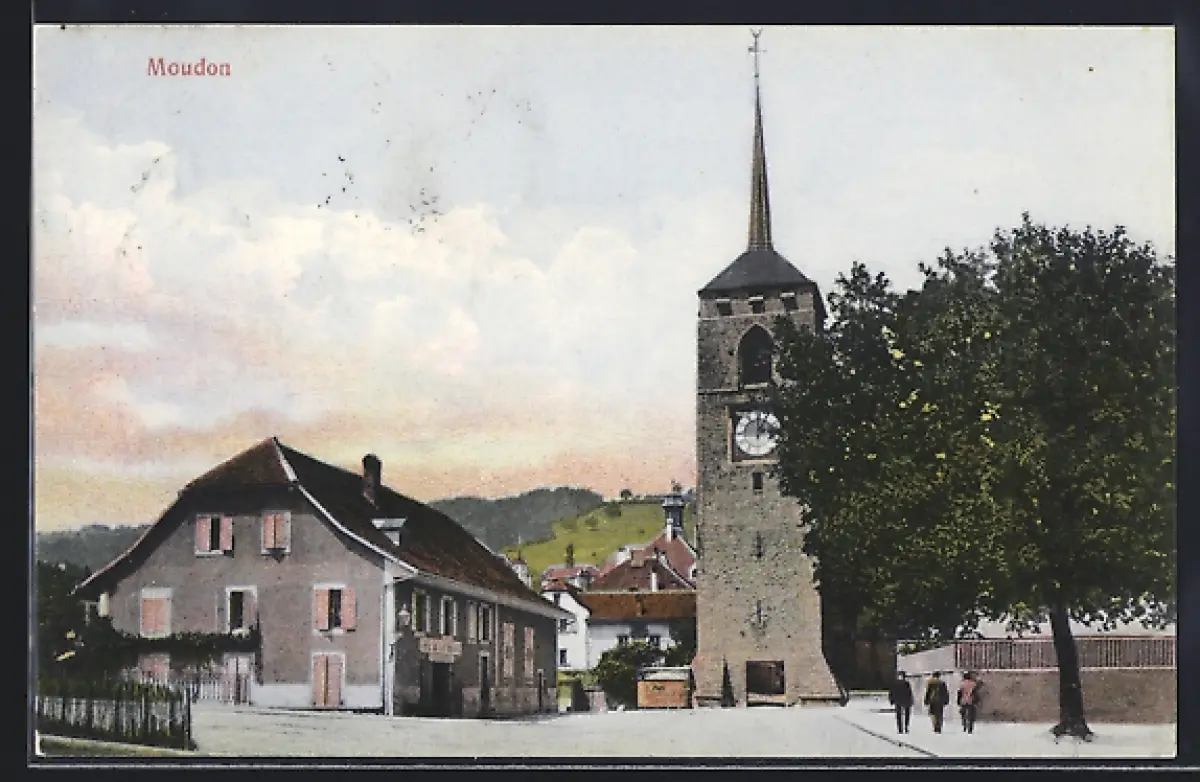 AK Moudon, Ortsansicht mit Turm