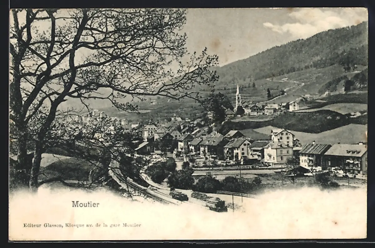 AK Moutier, Totalansicht mit Eisenbahnstrecke