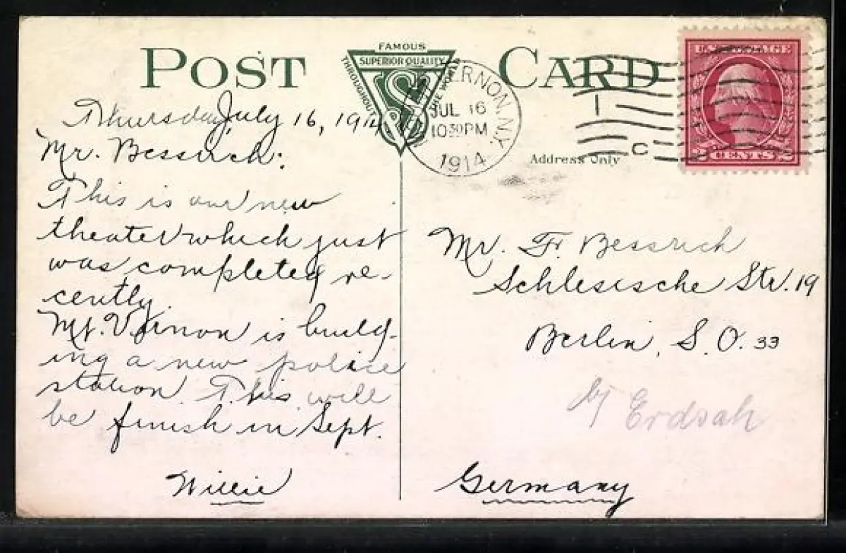 alte Ansichtskarte, gelaufen 1914, Eckknick links oben, guter Zustand