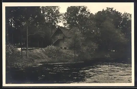 AK Müden /Lüneburger Heide, Alter Treppenspeicher a. d. Wieze, Ansicht vom Fluss aus
