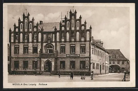AK Mügeln /Bez. Leipzig, Rathaus mit Gasthaus Ratskeller