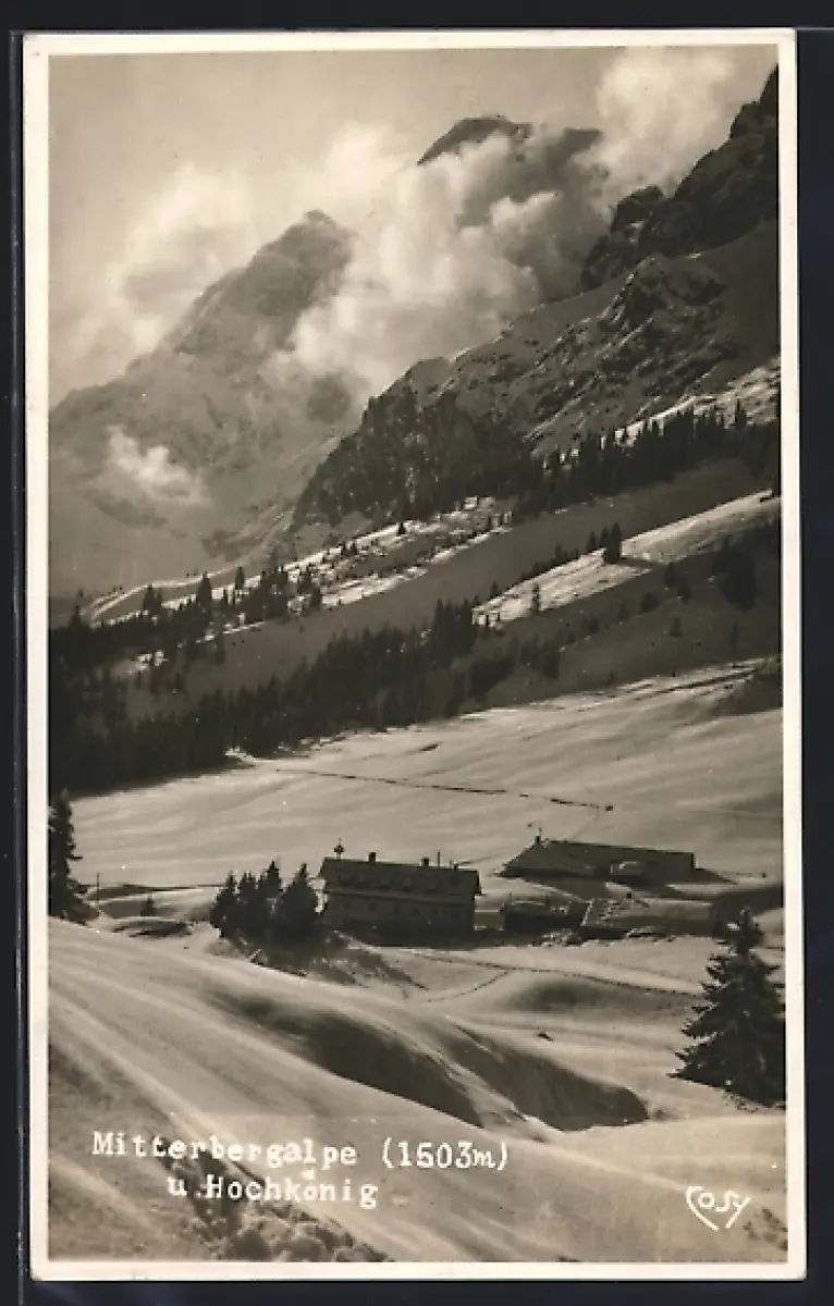 AK Mühlbach am Hochkönig, Mitterbergalpe mit Hochkönig im Winter