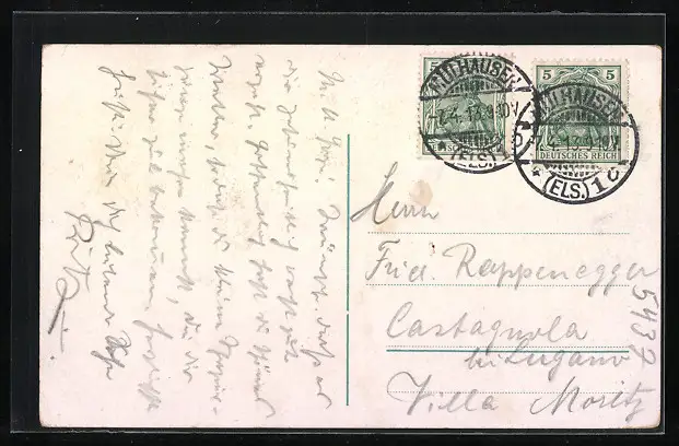 gelaufen 1913, Eckknick unten re., guter Zustand
