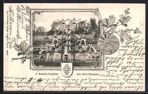 AK Mülhausen, I. Bezirks-Turnfest des Ober-Elsasses, Menschliche Pyramide