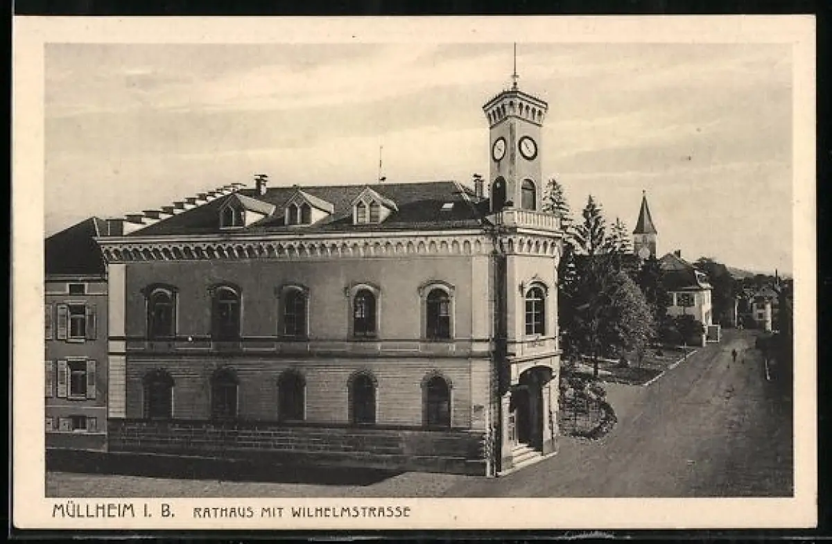 AK Müllheim i. B., Rathaus mit Wilhelmstrasse