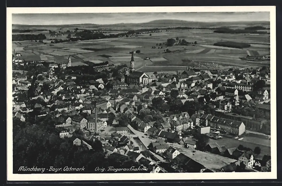 AK Münchberg /Bayr. Ostmark, Fliegeraufnahme des Ortes