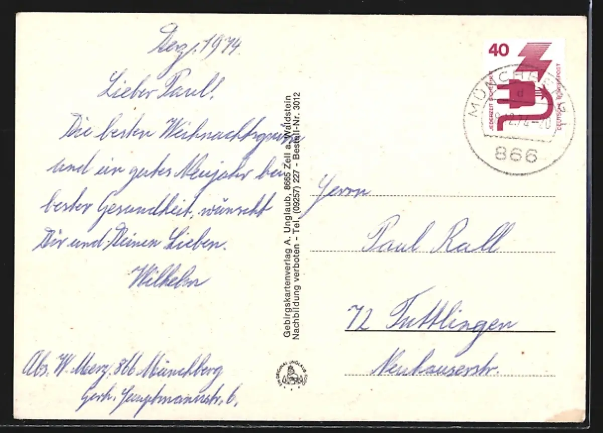 alte Ansichtskarte, gelaufen 1974, guter Zustand