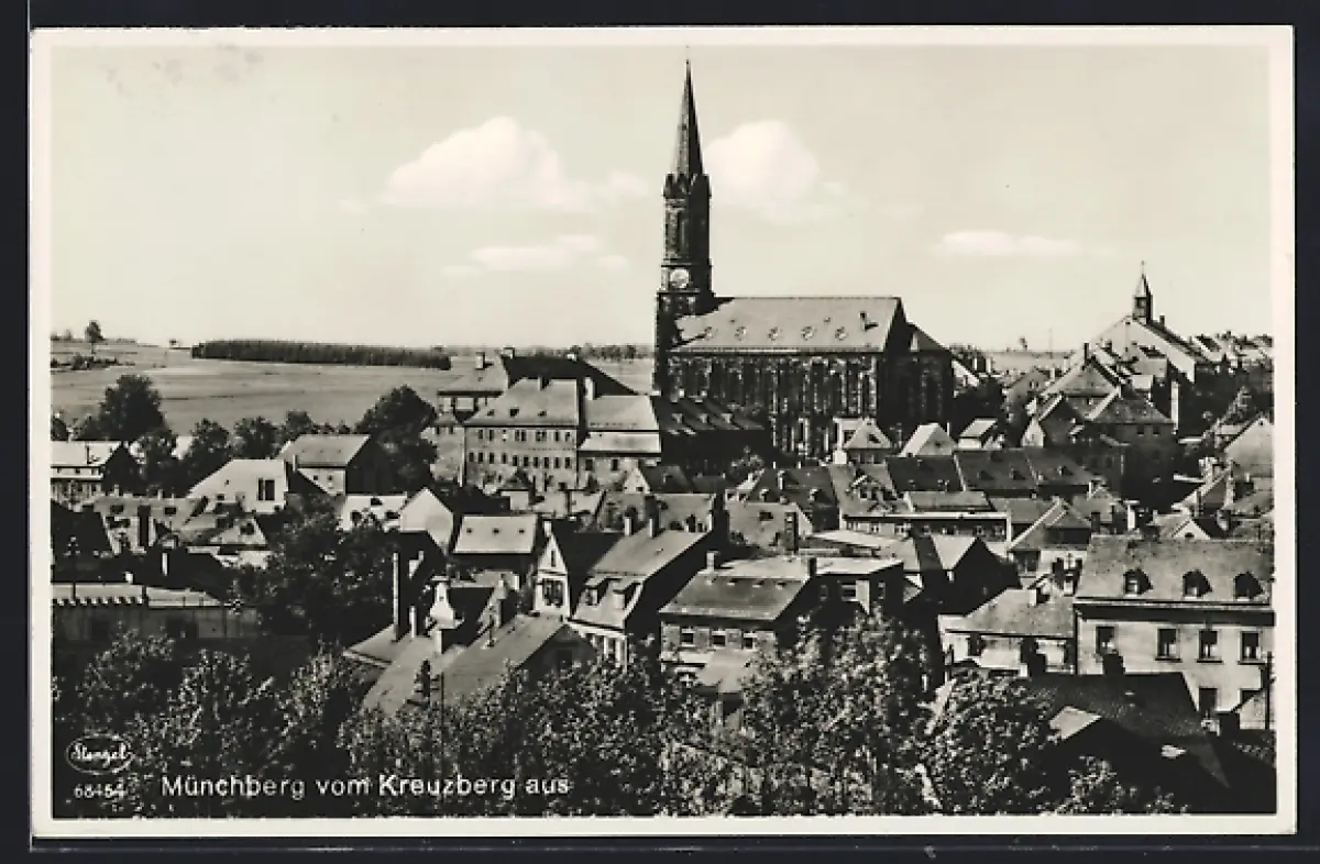 AK Münchberg, Stadtansicht mit Kirche vom Kreuzberg aus