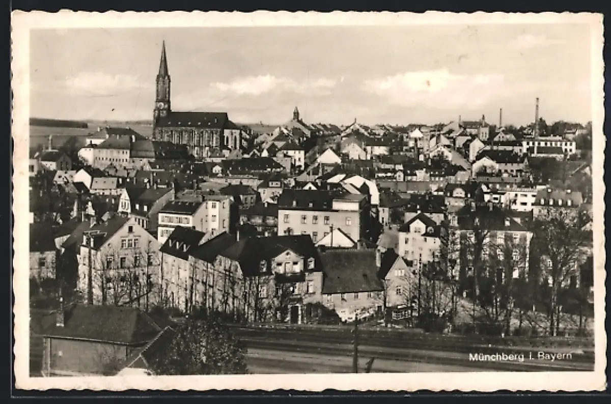 AK Münchberg i. Bayern, Totalansicht mit Kirche