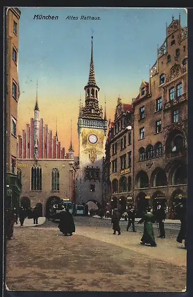 AK München-Au, Strassenansicht mit Altem Rathaus und Strassenbahn