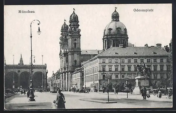 AK München, Blick auf den Odeonsplatz, Strassenbahn