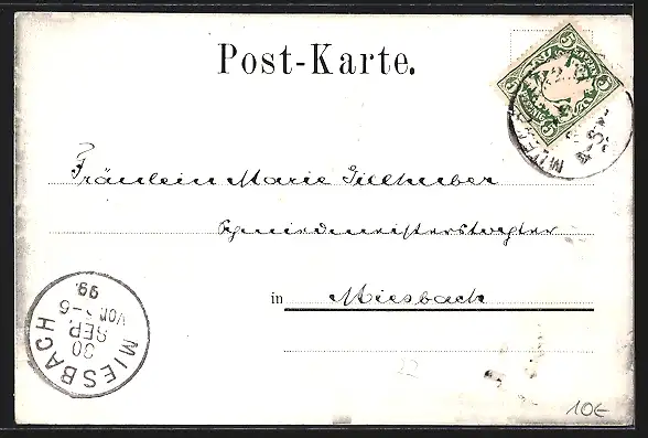 alte Ansichtskarte, gelaufen 1899, guter Zustand