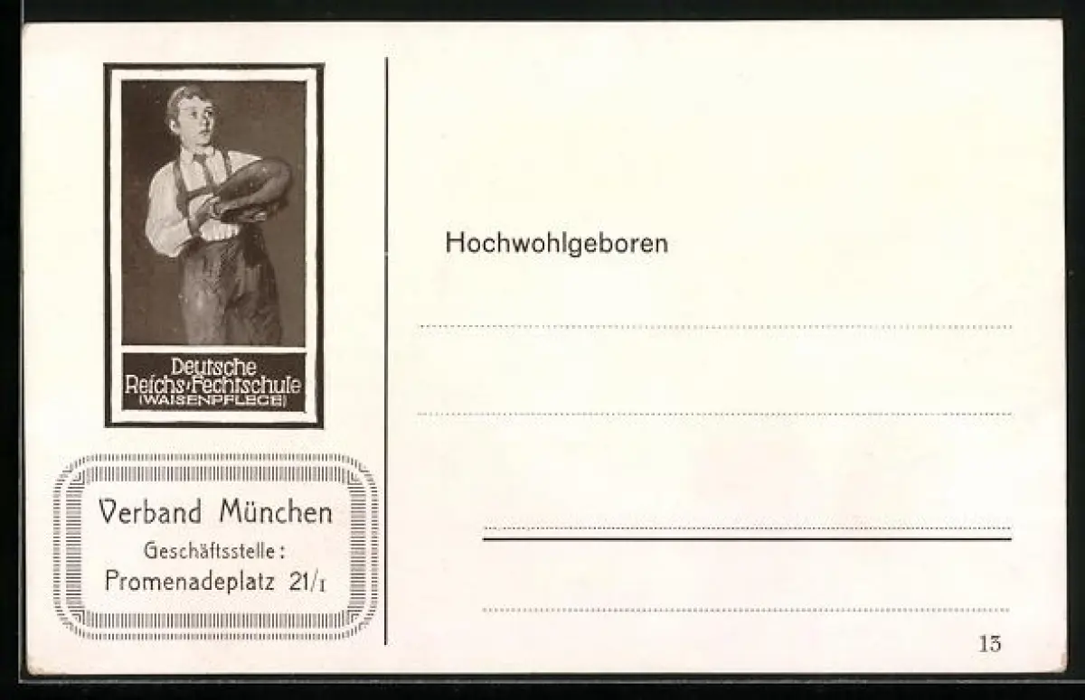 AK München, Deutsche Reichs-Fechtschule, Waisenpflege, Promenadeplatz 21 /I