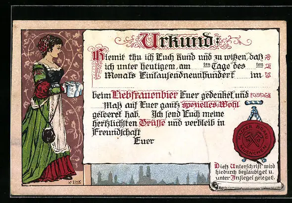 AK München, Hacker Brauhaus, Urkunde