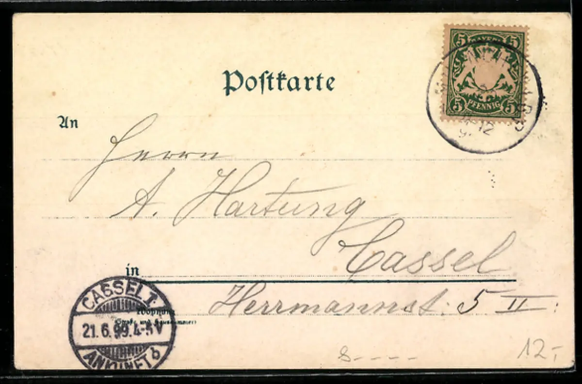 alte Ansichtskarte, gelaufen 1899, Eckknick links oben, guter Zustand