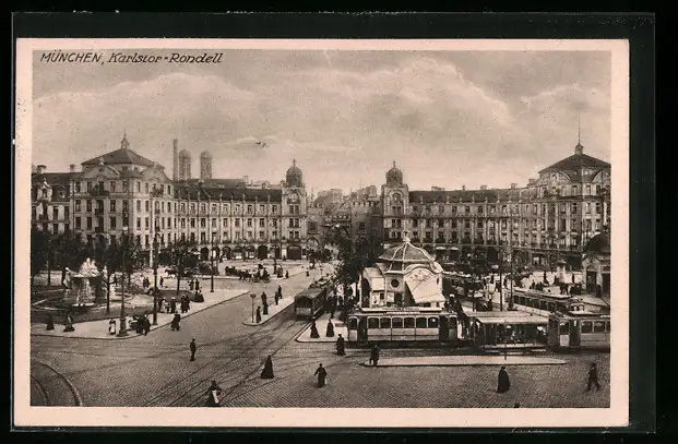 AK München, Karlstor-Rondell mit Strassenbahnen