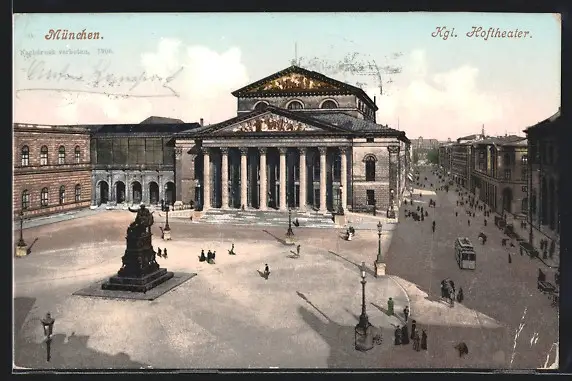 AK München, Königl. Hoftheater mit Strassenbahn