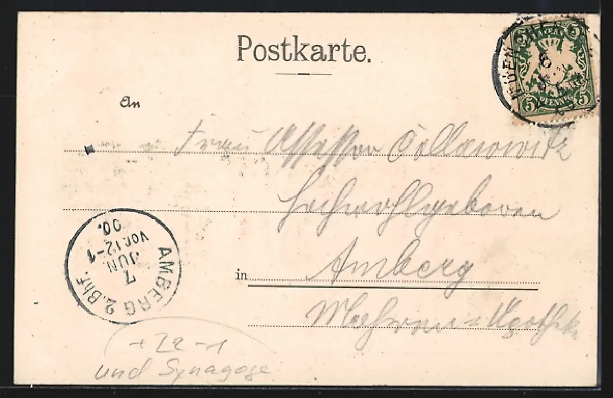 alte Ansichtskarte, gelaufen 1900, Stempelspur, guter Zustand