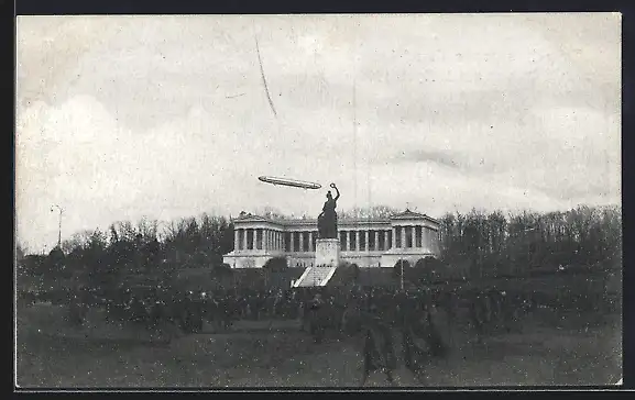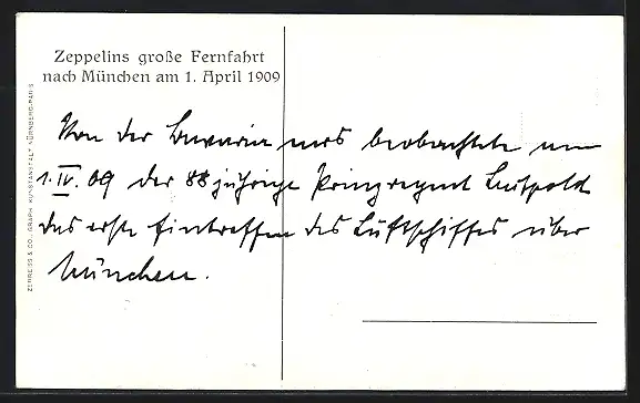 AK München, Luftschiff Zeppelin's grosse Fernfahrt am 1. April 1909