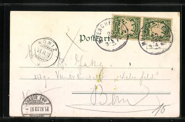alte Ansichtskarte, gelaufen 1903, Stempelspur, guter Zustand