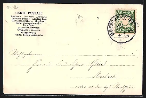 alte Ansichtskarte, gelaufen 1903, Einriss li. unten, guter Zustand