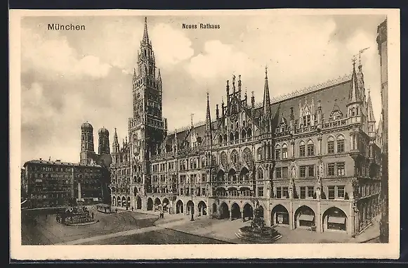AK München, Neues Rathaus und Frauenkirche, Strassenbahn