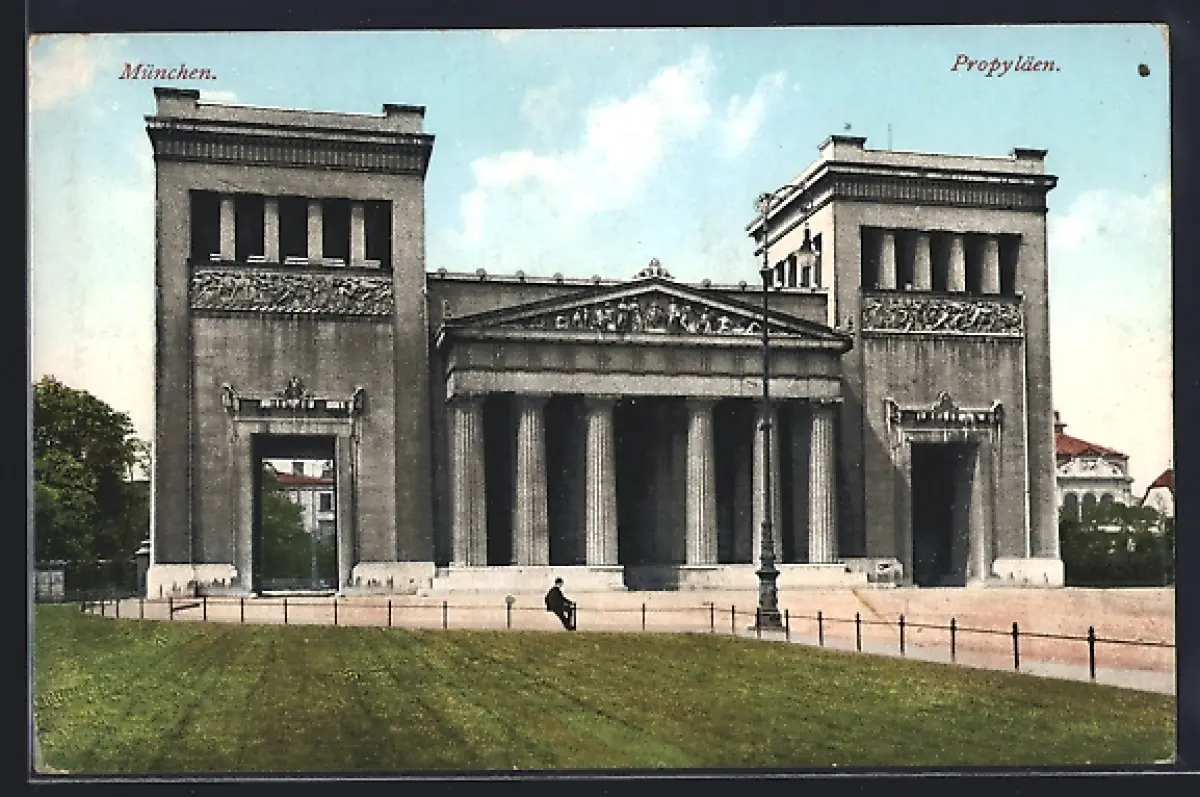 AK München, Propyläen mit Strassenpartie