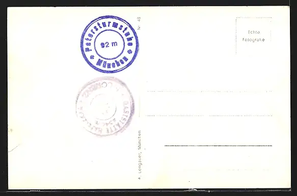 Personenbezogene Daten auf der Rückseite der Karte wurden durch blauen Textmarker unkenntlich gemacht. Die blauen Stellen sind auf die Vorderseite durchgeweicht und wirken sich negativ auf das Postkartenfoto aus