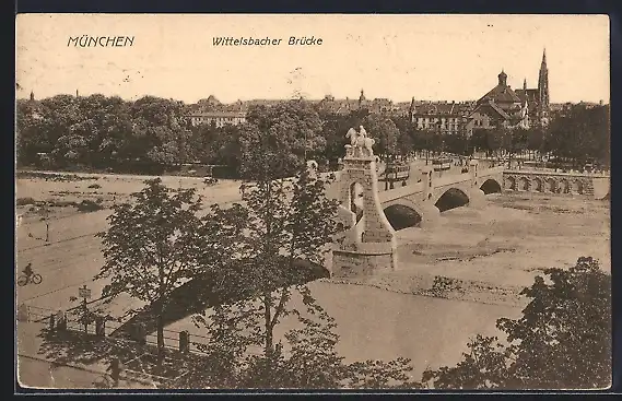 AK München, Wittelsbacher Brücke mit Strassenbahn