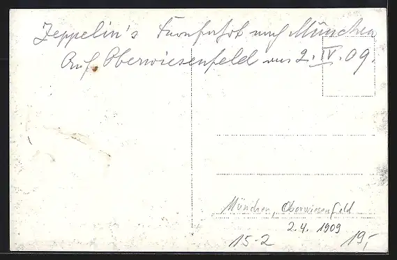 AK München, Zeppelin-Landung auf dem Oberwiesenfeld am 2.4.1909