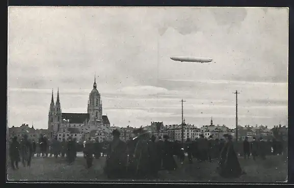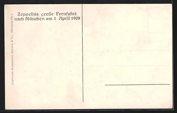 AK München, Zeppelin-Luftschiff über der Stadt 1909