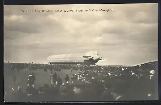 AK München, Zeppelin Z. 1 landet in Oberwiesenfeld, 2.4.1909