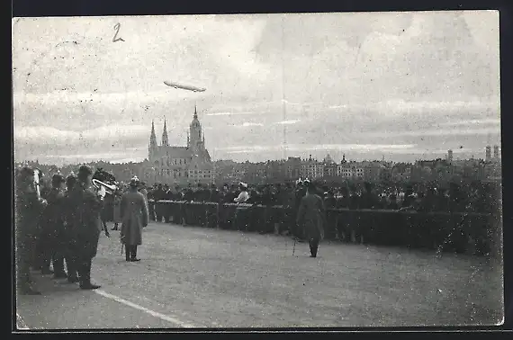 AK München, Zeppelins Fernfahrt, Ankunft des Zeppelin 1909