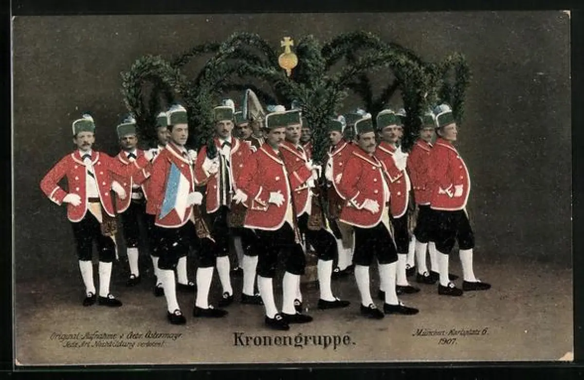 AK München, der Schäfflertanz 1907, Kronengruppe, Schäfflertanzgruppe
