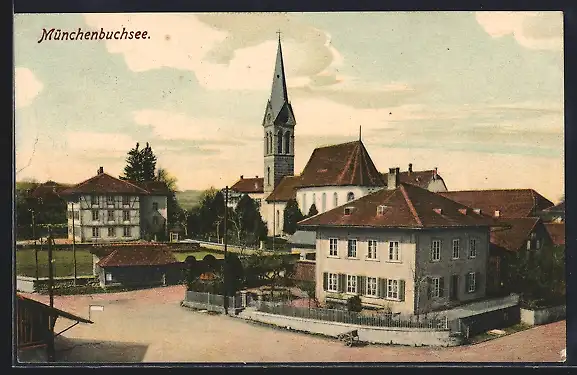 AK Münchenbuchsee, Ortspartie mit Kirche