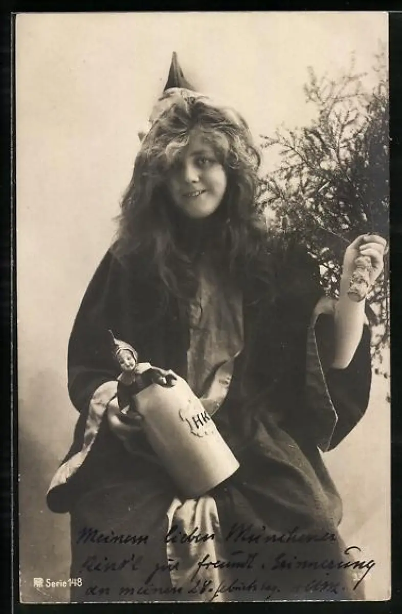 AK Münchner Kindl mit einem Deckelschoppen